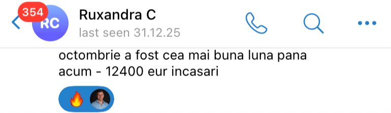 Ruxandra și Valentin au putut renunța la funnel-urile obositoare și neprofitabile, și să aibă prima lor lună de 12,000 euro încasați folosind doar Instagram.